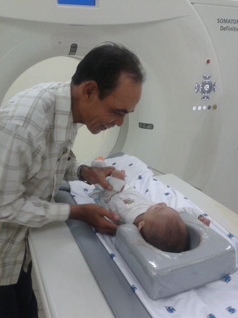 Dì, dượng và bé Trúc ngày đầu nhập viện.