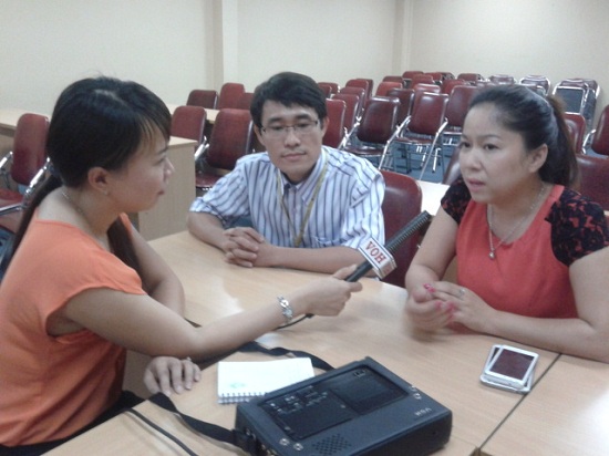 Pv Hồng Thúy đang trò chuyện với bà Lê Thị Bích Trâm- GĐ Công Ty TNHH Cao su Đông Nam Á- người đã nhận tài trợ chi phí phẩu thuật cho bé Trúc dự kiến là 35 triệu đồng…