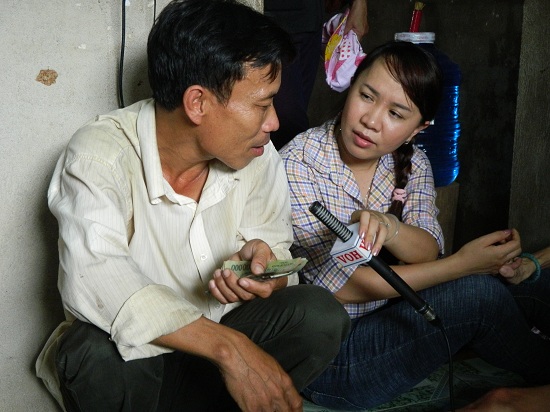 Chồng chị đi làm thuê để kiếm sống cho gia đình.