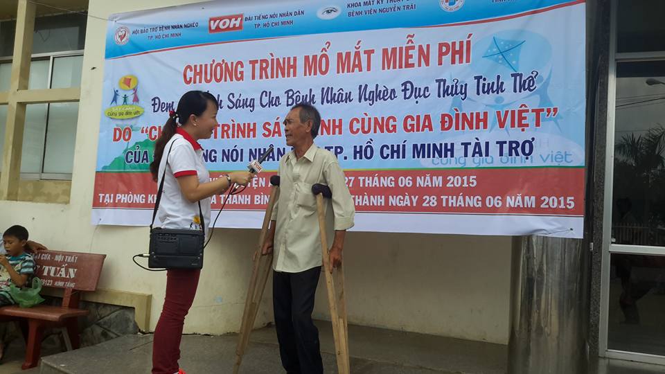 Hôm nay, Chương trình Satcanhcung GiadinhViet VOH đã phối hợp với Hội Bảo Trợ Bệnh nhân nghèo TP.HCM và Đoàn Y Bác sĩ BV Nguyễn Trãi mang lại ánh sáng cho 500 bệnh nhân nghèo Huyện An Biên – Tỉnh Kiên Giang. Bà con ở đây vì quá khó khăn mà để mắt bị mờ và mù trong thời gian dài…nay được tài trợ mổ miễn phí, họ vui lắm! Vui mà rơi nước mắt cho những tháng ngày thênh thang phía trước. …