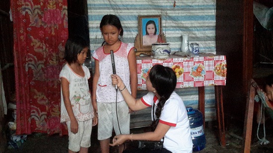Bà nội không thể trò chuyện, PV Hồng Thúy phải hỏi chuyện bà con hàng xóm.