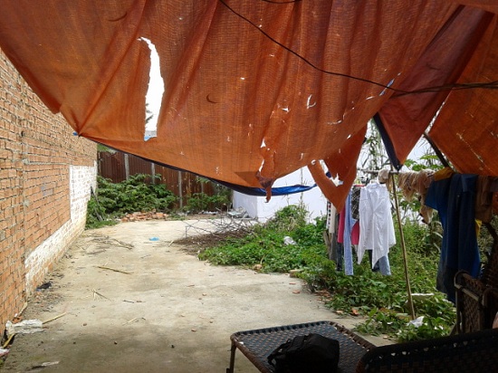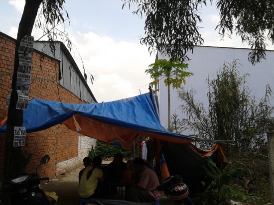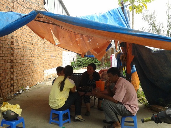 Lối đi được anh Thành mượn để làm nơi ở của ba ba bố con.