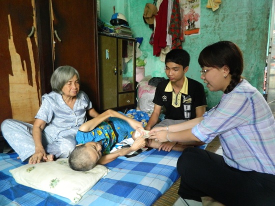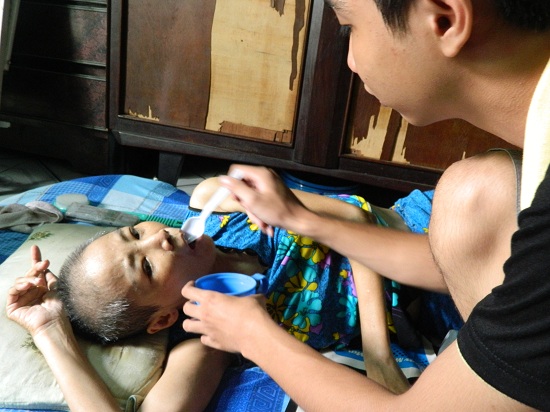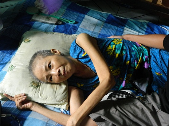 Từ một lao động chính nay cô chỉ còn khoảng 35 kg và ăn nói rất khó khăn.