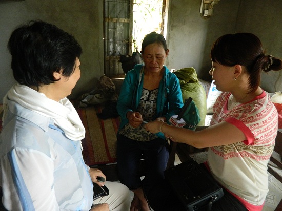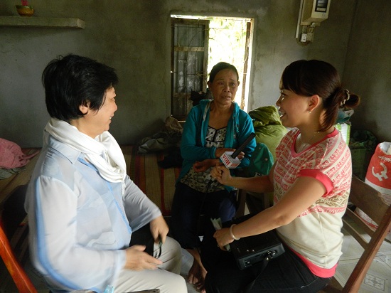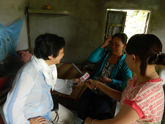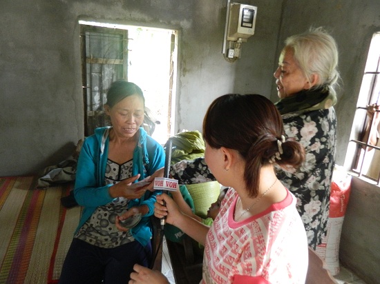 Phóng viên Hồng Thúy và bà Mai Thanh Diệu đang trò chuyện với cô Lý