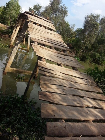 Đã có rất nhiều em học sinh và người già rơi xuống chiếc cầu này! Đó là thông tin rất đau lòng khiSatcanhcung GiadinhViet xuống khảo sát tại Xã An Biên- Huyện An Minh- Tỉnh Kiên Giang. Bên kia chiếc cầu là 1 trường tiểu học và hàng ngày có cả trăm em học sinh phải đi qua đây! Đến mùa lũ và nước lớn lại càng nguy hiểm hơn. Chiều dài cầu 33m khoảng 200 triệu đồng. Cô Diệu- nhà tài trợ Nikko đi khảo sát chung đã đóng góp 20 triệu đồng…Dưới đây