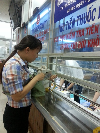 Phóng viên Hồng Thúy trực tiếp đóng viện phí cho chị Nhâm từ số tiền ủng hộ của thính giả.