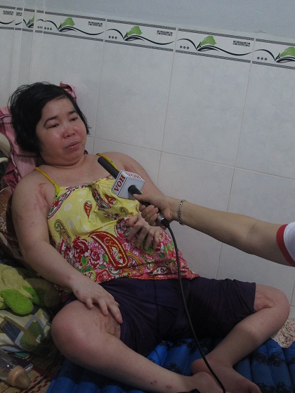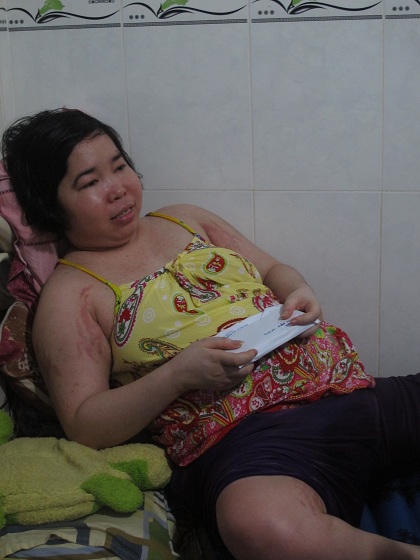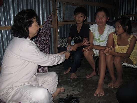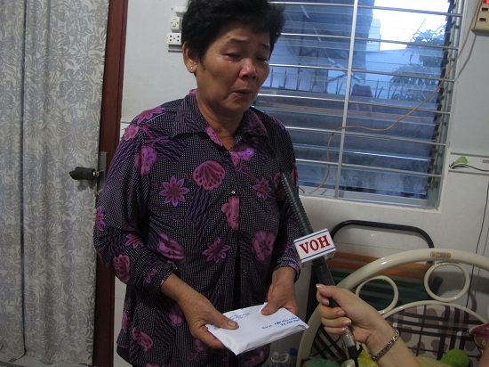 Bà Mai Thanh Diệu-đại diện nhà tài trợ trao tiền ủng hộ nhân vật.