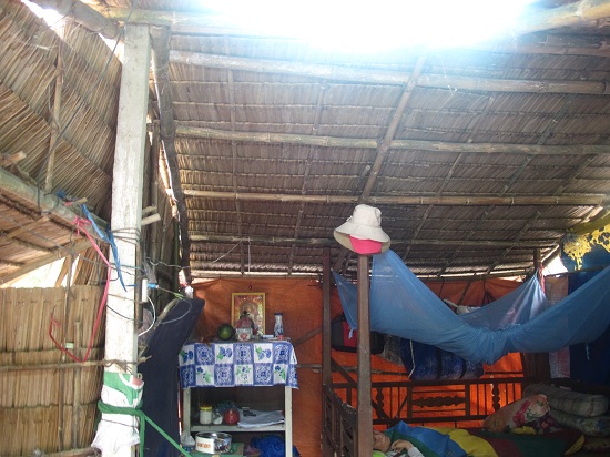 Căn chòi lá rách nát là nơi sinh sống của gia đình chú.