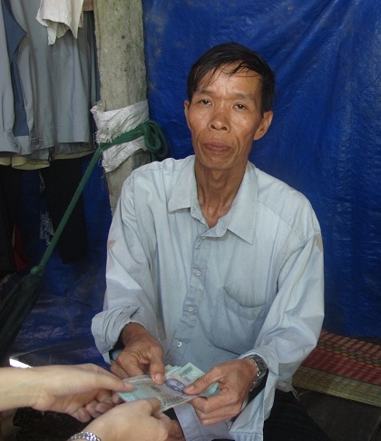 Chú Út nhận tiền hỗ trợ của chương trình