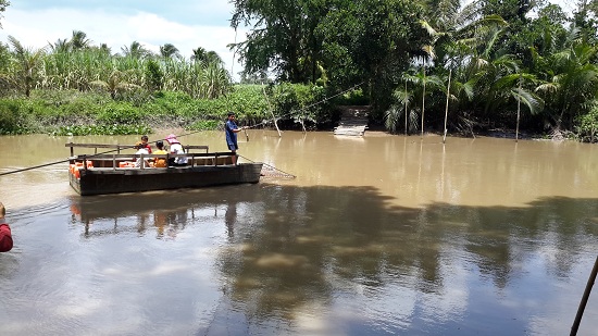 Thưa quí vị và các bạn! Nơi chương trình SCCGĐV đặt chân đến trong tuần vừa qua là ấp Mộc Anh- Xã Lưu Nghiệp Anh – một xã nghèo nhất huyện Trà Cú, tỉnh Trà Vinh, chủ yếu là người Kh’me chiếm 97,8%. Nơi ấy, có Con sông có cái tên rất đẹp là Ngọc Biên- Dòng sông chia đôi bờ hai xã Lưu Nghiệp Anh và xã An Quảng Ngãi của huyện Trà Cú. Chiều ngang sông rộng khoảng 50m, sâu 5m. Dù biết sông sâu và dòng nước chảy siết rất nguy hiểm như thế nhưng vì giấc mơ con chữ, được đến trường, được đi học như bao bạn bè cùng trang lứa mà hàng chục các em học sinh sống bên kia sông vẫn ngày ngày mạo hiểm qua sông. Các hộ dân sống hai bên bờ vì cuộc sống mưu sinh, vì miếng cơm manh áo mà liều mình như chẳng có giữa dòng nước siết ấy.
