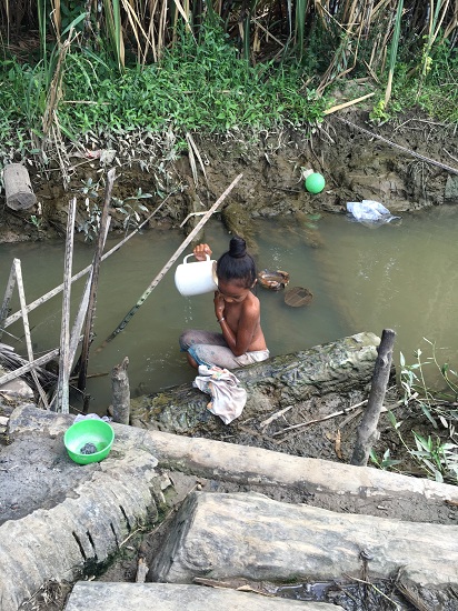 Con mương là nơi tắm giặt, ăn uống và sinh hoạt hàng ngày của 4 bà cháu.