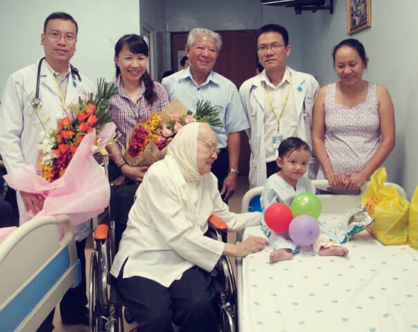 P/s: Bó hoa mà Hồng Thúy nhận được từ tay của Bác Trần Thành Long- Chủ tịch Hội Bảo Trợ Bệnh nhân nghèo TP.HCM và Bà Bảy Huệ- vợ cố Tổng bí Thư Nguyễn Văn Linh xin trân trọng gửi lại cho đội ngũ Y Bác Sĩ Khoa Tim Mạch BV ĐH Y Dược, BSNguyễn Hoàng Định, BS Cao Khang…và hàng ngàn thính giả gần xa đã chung tay ủng hộ cho con, giúp trái tim con được quay về đúng vị trí!