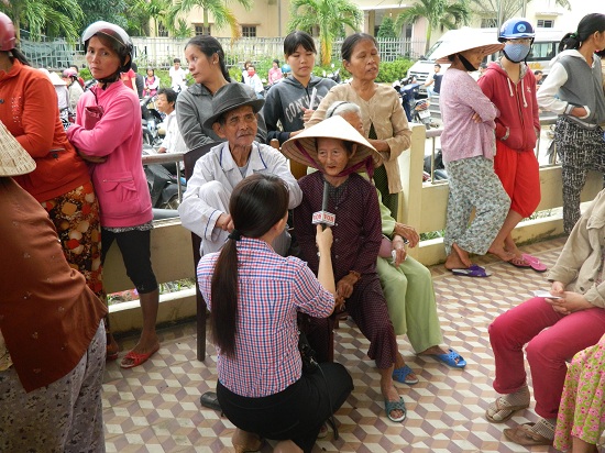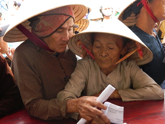 Ông Trần Văn Thuận nhiệt tình giúp đỡ những cụ già.